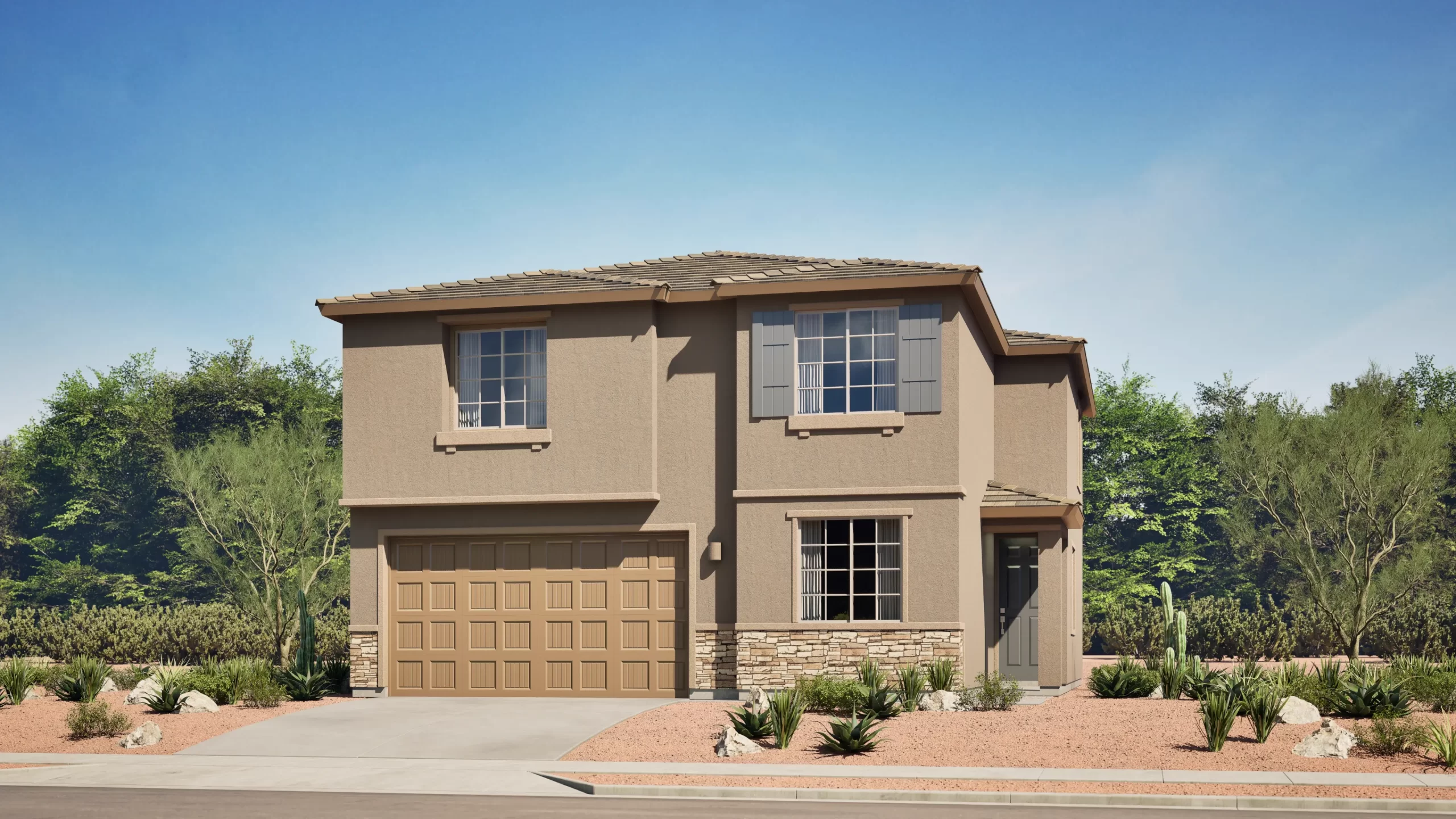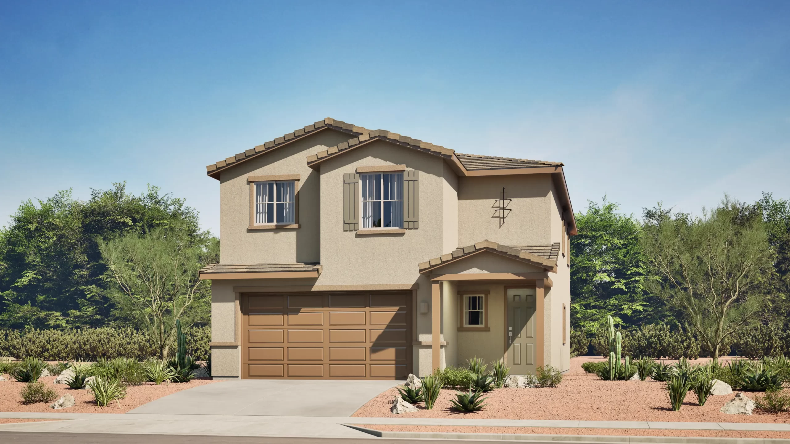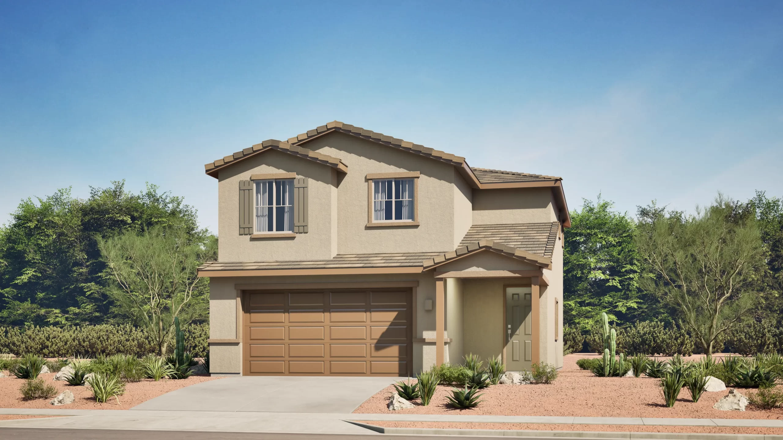 This two-story home offers a smart layout with all the main living spaces on the ground floor. The kitchen, dining area, and family room share an open, connected layout with direct access to a covered patio. A powder room is conveniently located near the entry. Upstairs, the owner's suite and additional bedrooms provide privacy and comfort for the whole family. A two-bay garage completes the home.